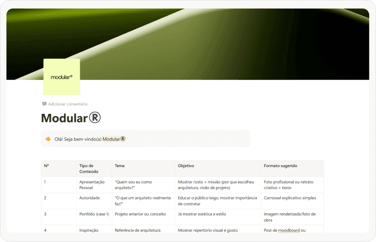 Conheça o Modular®: a sua nova ferramenta secreta para decifrar o Instagram, eliminar a concorrência e atrair os projetos dos seus sonhos, de forma consistente e previsível.
